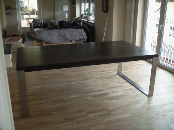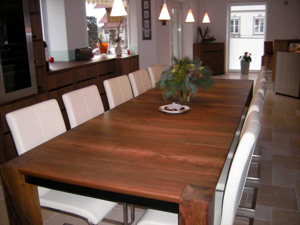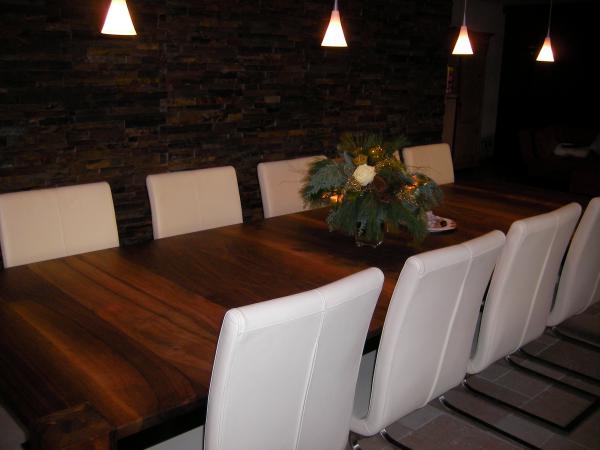 Grosse Tische meist in dunklen, lebhaften Farben sind derzeit Trend.