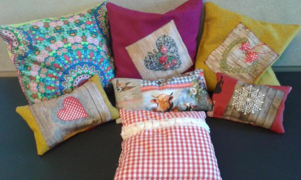 Kissen teilw. aus Loden in verschiedenen Ausführungen und Größen. Kissen ca. 30x30 cm - 18,- € Kissen ca. 28x15 cm - 14,- € Kissen ca. 10x10 cm - 6,- € Preise inkl. MwSt. zzgl. Porto